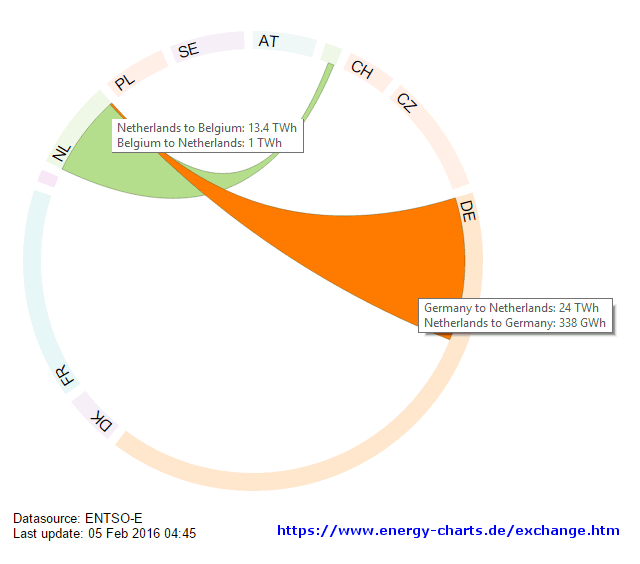 tm. december 2015 - update van eerste jaar rapport Maar nu al is duidelijk, dat met genoemde bijna 118 GWh (eerste, nog lang niet volledige totaal cijfer voor 2015), de in het "definitieve, gereviseerde" jaaroverzicht voor 2014 gemelde hoeveelheid van bijna 67 GWh over dat hele kalenderjaar, de gecertificeerde, en geijkt bemeten zonnestroom productie in 2015 alweer minimaal 76 procent hoger heeft gelegen dan in 2014. En mijn verwachting is dat het fors meer zal gaan worden, als nog talloze ontbrekende meetdata met terugwerkende kracht zullen worden toegevoegd door CertiQ. Import / export GvO's Noorwegen blijft frequent terugkomen als "hof"leverancier van GvO's aan Nederland. De eerste maand van het nieuwe jaar was dat niet anders, met een volume van bijna 1,4 TWh (een derde van de jaarproductie van kerncentrale Borssele). Grotendeels "verfoeide sjoemelstroom" hydro exemplaren, maar ook zelfs een deel van windenergie. Het land staat echter niet bepaald "bekend" om massale hoeveelheden windturbines. Ze hadden eind 2014 slechts 819 MW windturbine capaciteit staan. Het kleine Nederland had toen al 3,4 maal zoveel, 2,8 GW (zie pdf EWEA). En toch importeerde Nederland, naast wat GvO spul van Noorwegen, maar liefst bijna 43% van de geïmporteerde GvO's in de vorm van wind certificaten, "goed" voor een volume van maar liefst 2,2 TWh. Grotendeels uit, nota bene, mediterraan Italië, en een ander zeer substantieel deel uit windenergie kampioen Denemarken. Zilch uit nog grotere (absolute) kampioen Duitsland, die immers alle "erneuerbare" stroom direct op de beurs laat verkopen door de grote 4 netbeheerders, zonder (!) tussenkomst van GvO's. Dat krijg je, als je in een land als het onze veel gas- en kolengestookte (deels import) stroom hebt "te vergroenen" voor al die afnemers van (fictieve) "groene elektriciteit". Dan ga je overal maar shoppen wat maar "groen" (of "iets groenigs") mag heten, om aan de "groen-verplichtingen" in eigen land te kunnen voldoen ... Italië is, naast een belangrijke windcertificaat leverancier, ook nog eens de belangrijkste exporteur van zonnestroom GvO's naar Nederland (bijna alles, naast nog een beetje uit België), goed voor een respectabele 3,4% van de totale GvO import van januari (een van de slechtste maanden überhaupt om het over zonnestroom productie te hebben, bij PPV met een aandeel van slechts 2,6% van de jaaropbrengst). En er zaten ook nog biomassa en waterkracht GvO's in de "mix" die Italië op deze wijze op de tweede positie liet belanden. Derde en vierde zijn de "usual suspects" Zweden en Frankrijk, die grote partijen blijven bij het aanleveren van de "schaamstroom" GvO's uit al lang bestaande waterkracht centrales. Al leverde Zweden daarnaast ook nog eens een substantieel deel uit windkracht. Wat niet heel erg gek is, want het land had ook al eind 2014 5,4 GW aan windturbine vermogen staan (zie hetzelfde EWEA document hierboven gelinkt). Nieuw is maar liefst 1 (één) GvO uit Kroatië, wat kennelijk tot de lange rij landen is aangetreden nadat het zich had aangemeld bij de "issuing bodies" (geaccepteerd in juni 2014). Zodat de Nederlandse schaamstroom (certificaten) handelaren nog meer keus hebben. En ze mogelijk zelfs wel in keuzestress gaan belanden, omdat ze nu al uit maar liefst 13 landen én Nederland zelf (!) kunnen "kiezen" wat voor groene papiertjes ze nu weer eens zullen gaan inkopen. Wederom is het aandeel van import van Noorse (grotendeels hydro) GvO's de afgelopen 12 maanden verder afgenomen, naar 24,9% (in vorige maandrapport nog 25,9%). Dat komt deels natuurlijk omdat er steeds meer landen komen waaruit GvO's kunnen worden geïmporteerd. Maar u kunt er vergif op innemen, dat de zware maatschappelijke druk om aan die import uit Noorwegen "iets" te doen (via met name Wise, die al jaren strijd voor meer GvO's en groene stroom uit eigen land), handelaren geprikkeld zou kunnen hebben om hun "heil elders" te gaan zoeken. Al blijft dat dan nog steeds hangen op een majeur aandeel waterkracht uit al lang bestaande grote hydropower projecten, in Frankrijk (17% GvO aandeel laatste jaar), Zweden (ditto), en Italië (totaal aan GvO's, deels hydro 14,0%). Groene stroom superpower Duitsland draagt vrijwel niks bij (0,9% !). Het totale import volume aan GvO's in de afgelopen 12 maanden was zelfs weer iets hoger dan in december. In totaal werd er in een jaar tijd maar liefst een equivalent aan GvO's geïmporteerd die een volume van 34,6 TWh (equivalent van 8,7 maal de jaarproductie van kerncentrale Borssele!) aan gas- en kolen-gestookte fossiele stroom zullen gaan "verschaamgroenen"... Export van GvO's Bij de export van een - beperkt aantal (278 GWh) - GvO's in januari zien we een duidelijke afwijking van een lange trend. Normaal gesproken ontvangt België het hoogste aantal certificaten, maar ditmaal is nota bene Noorwegen (waar we wederom het grootste deel van de import van kregen, een 6 maal zo grote hoeveelheid) de grootste recipiënt, met ruim 226 GWh (dik 81% van totaal van export). En, nota bene !! Duitsland, Europa's grootste fysieke groene stroom producent, met een derde deel van de productie al uit hernieuwbare bronnen (zonder bijstook in kolencentrales !), mocht 11% van door Nederland verhandelde GvO's ontvangen (bijna 30 GWh)! Dan was ook nog armlastig Luxemburg met 7% een "belangrijk" afnemer. België sloot in deze byzondere (?) maand de rij, met maar 1% van de door NL verhandelde certificaten. Het gaat daarbij grotendeels om hydropower certificaten (74%), terwijl Nederland zelf nauwelijks iets op dat gebied opwekt. U kunt er dus vergif op innemen dat een groot deel van die export gewoon tijdelijk NL in geïmporteerde groene papierwaren betreft uit Scandinavië, of uit Frankrijk... Biomassa was bij de export de tweede bron (21%), wind de derde (5%). Bizar: er werden door Nederland nota bene ook nog 47 GvO's "zon" ge-ëxporteerd, en wel naar België. Terwijl "we" uit dat land in dezelfde maand 419 maal zoveel zonne-GvO's importeerden. U ziet ook 