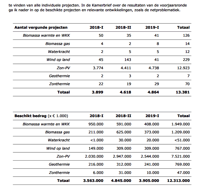 14,5 resp. 14,9 MWp op een totaal nu beschikt (overgebleven)