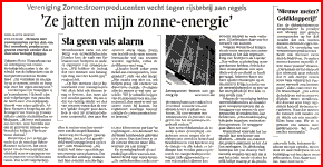 De eerste titel van het stukje, "Vereniging Zonnestroomproducenten